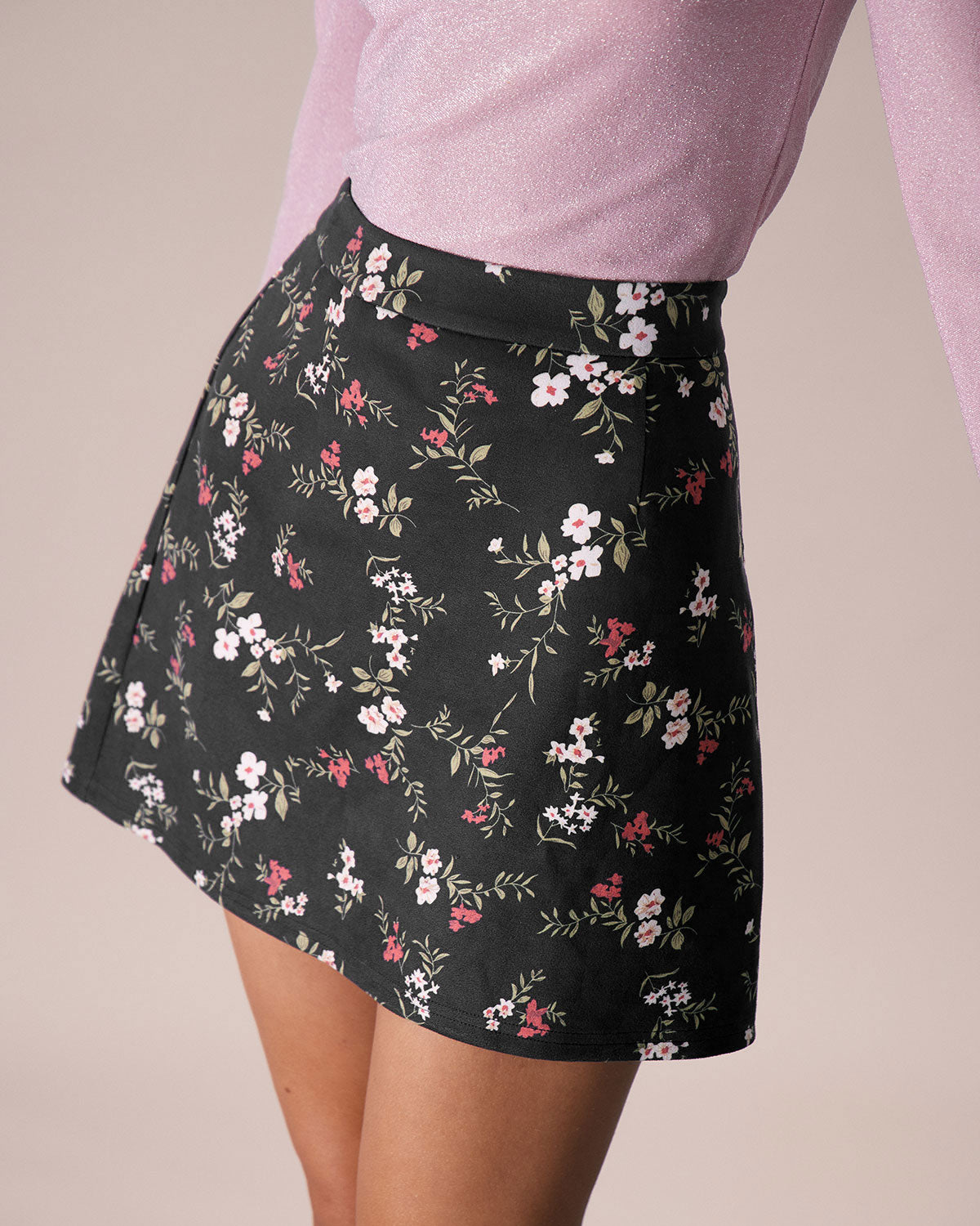 The Black High Waisted Floral Print Mini Skirt