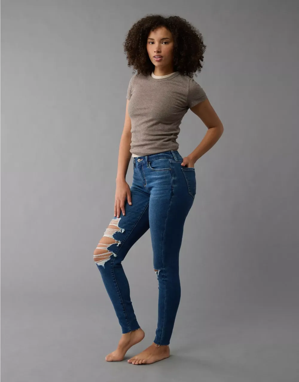 Curvy Ripped High-Waisted Jegging
