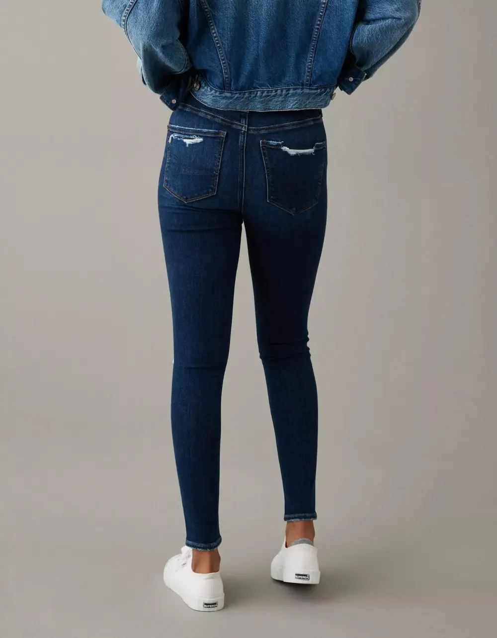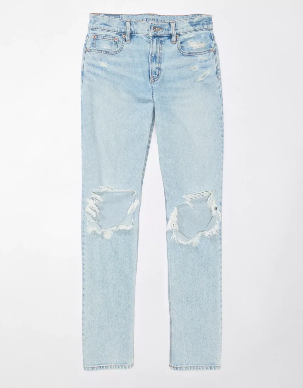 Stretch Super High-Waisted Ripped Ankle Straight Jean